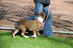A cue supplies an opportunity to earn a reward. A cue may be a word, scent, sound, gesture, or touch and gives an identification to the behavior. First, the desired behavior must be taught before introducing the cue. This makes sure your dog understands what behavior is expected. Use a marker and reward to communicate to your dog that they have done what you asked and chosen the correct behavior. The cue then identifies when the behavior should reoccur. The reward will motivate your dog to repeat the cued behavior. For example, when teaching your dog to sit initially, a lure may be used to guide your dog into position by moving the treat above and over their head. Their hind end should naturally drop to the floor. Make sure to mark and reward when it does. As an alternative, capturing can be used to teach the same behavior by marking and rewarding your dog when they choose to sit on their own. When this behavior is offered at least 75% of the time, it is time to introduce the cue.